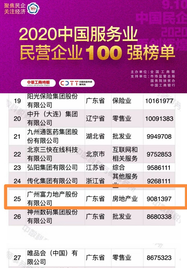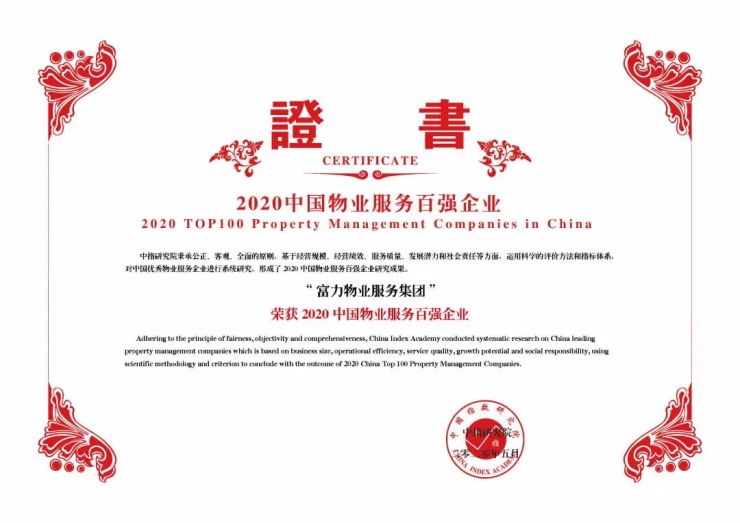 今年5月,在“2020中国物业服务百强企业研究成果发布会暨第十三届中国物业服务百强企业家峰会”上,富力物业荣膺“2020中国物业服务百强企业”、“2020中国物业服务百强满意度先进企业”、“2020中国物业服务百强企业服务规模TOP10”“2020中国特色物业服务先进企业-商业物业服务先进企业”等多项殊荣。