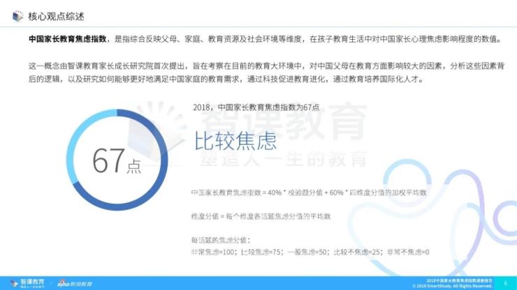 这便是中国家长对于孩子教育焦虑的真实写照。最近由新浪教育发布的《中国家长教育焦虑指数调查报告》显示:2020年中国家长教育焦虑指数为67点,整体出于比较焦虑的状态。