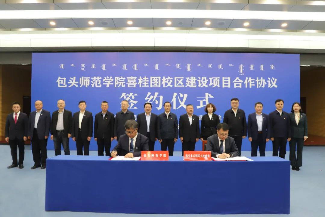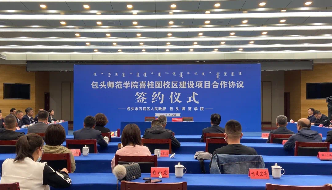 4月23日,石拐区人民政府与包头师范学院签署包头师范学院喜桂图校区建设项目合作协议。